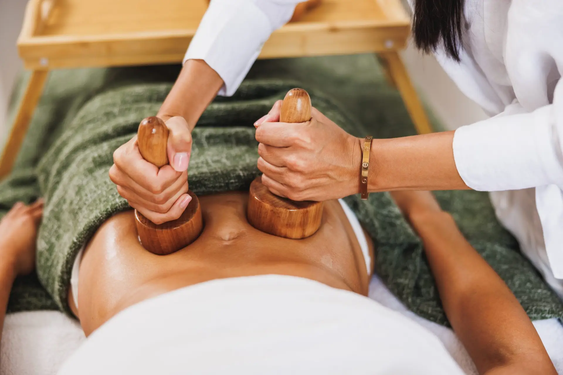 Tretman uključuje snažne masažne pokrete i specifičnu vakum metodu koja se izvodi drvenim čašama, gdje se snažno potiču limfa i cirkulacija, i razgradnja masnih naslaga.